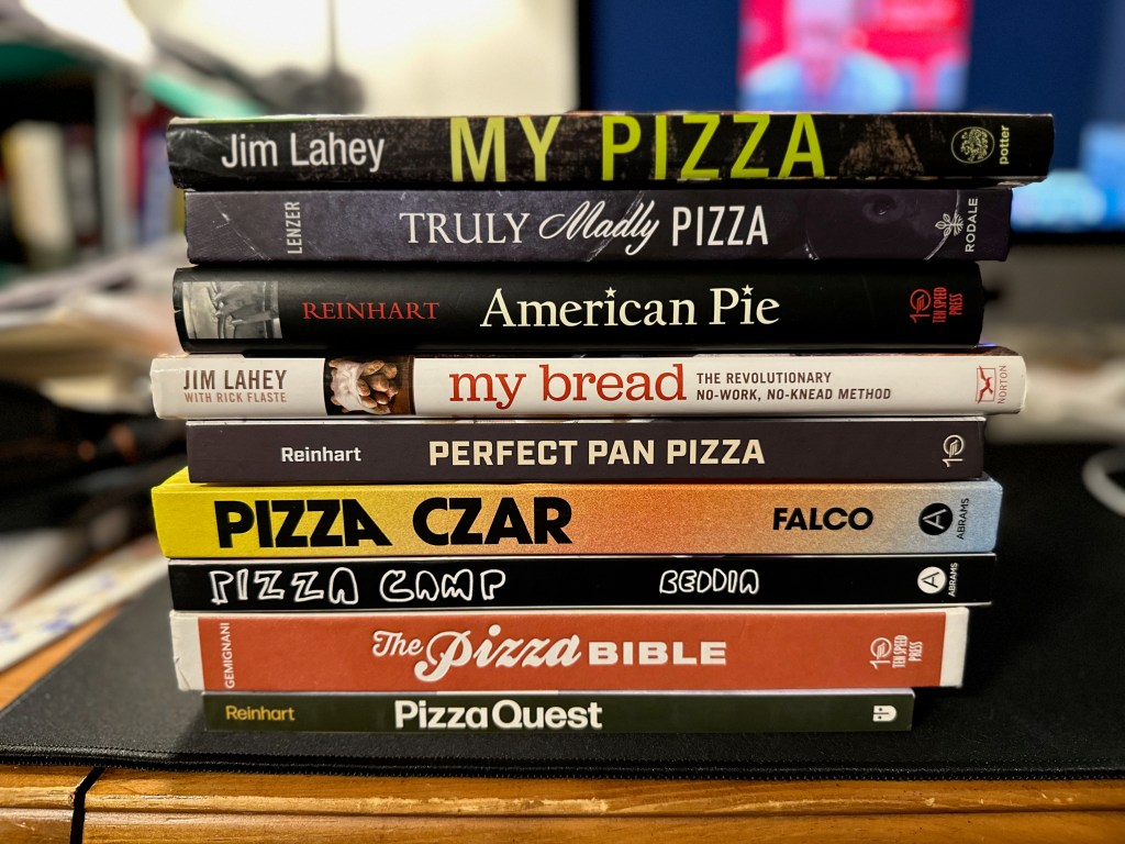 Here is my real world Pizza book Library, not to mention the books on my Kindle.